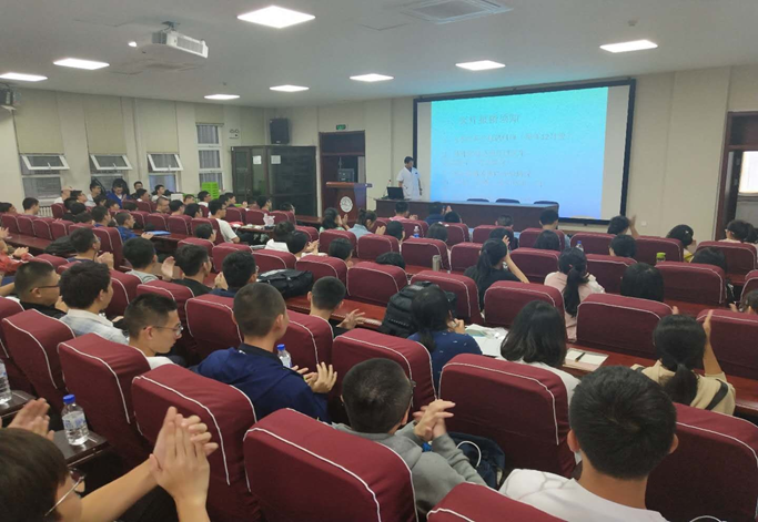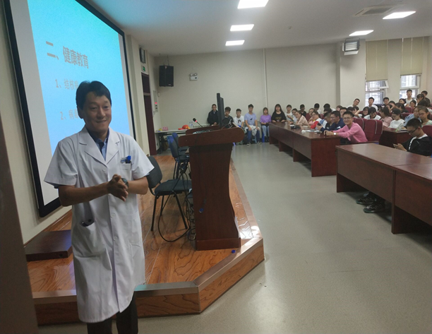 王东升老师向同学们介绍了医疗报销须知,包括入学后医疗报销时间、特殊病情必须经过医生、院长签字以及医疗报销额度等事项。并幽默地为大家举例说明了医疗报销范围以外的情况。着重讲解了健康教育的相关问题,内容涵盖结核病的类型介绍及发病症状、病毒性肝炎乙型的传播条件及治疗方法、食物中毒的防范等。并再三叮嘱同学们,一旦发现自己或他人有类似的病症,一定要及时和校医院沟通并进行医治。随后,王东升老师通过列举往年的患病实例,加深了同学们对这类严重的传染病的认识,强化了同学们对健康教育的重要性的理解。王东升老师幽默风趣的讲解将讲座变得生动有趣,场上时常响起同学们热烈的掌声和阵阵笑声。
