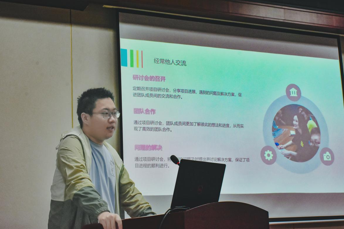 副教授刘华虓先生及其团队成员徐可彤同学,以“于方德社区绽放开源之花——浅谈方德项目带给我的经验与收获”为主题,分享了参与开源实践项目的意义和项目管理流程,以及通过项目实践所获得的能力提升和收获。刘老师补充道,参与项目不仅补充了本科生的实操经验,促进个人成长,还提升了面试竞争力。