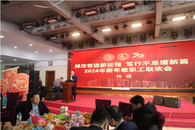 领导班子全体成员、老专家代表、两院教职工代表、学生代表约200余人欢聚一堂,共迎新春,欢庆佳节。