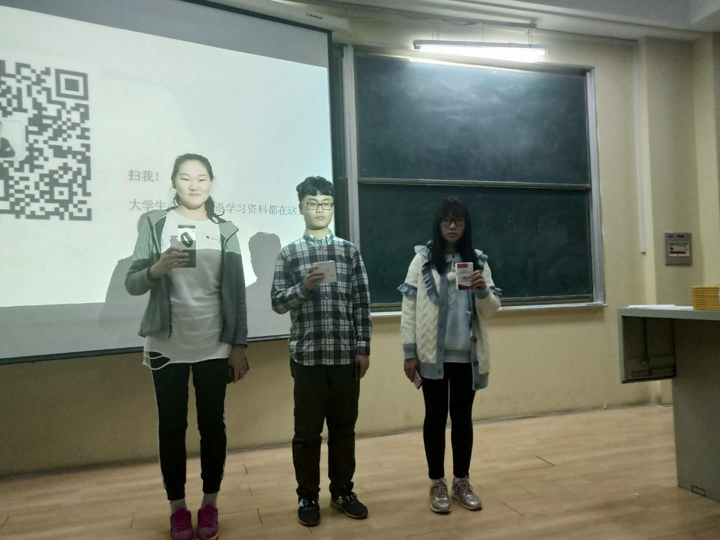 硕士严就是张佳欣学姐主讲,从听力,阅读,翻译,写作,传统文化等方面为考生仔细讲解提高英语素质的方法和应试技巧,并且针对不同的同学提出了不同的意见。现场互动频繁,气氛十分热烈。第二部分为抽奖环节,奖品包括小米运动手环、蓝牙耳机等,社团采取抽奖小程序方法进行抽奖,保证抽奖的公平公正,同学们踊跃参与,最终有三位幸运儿获得奖品。第三部分为答疑环节,每位同学可与学长学姐零距离接触,与学长学姐探讨自己对英语学习的认知和困惑,来提高自己的英语素质。