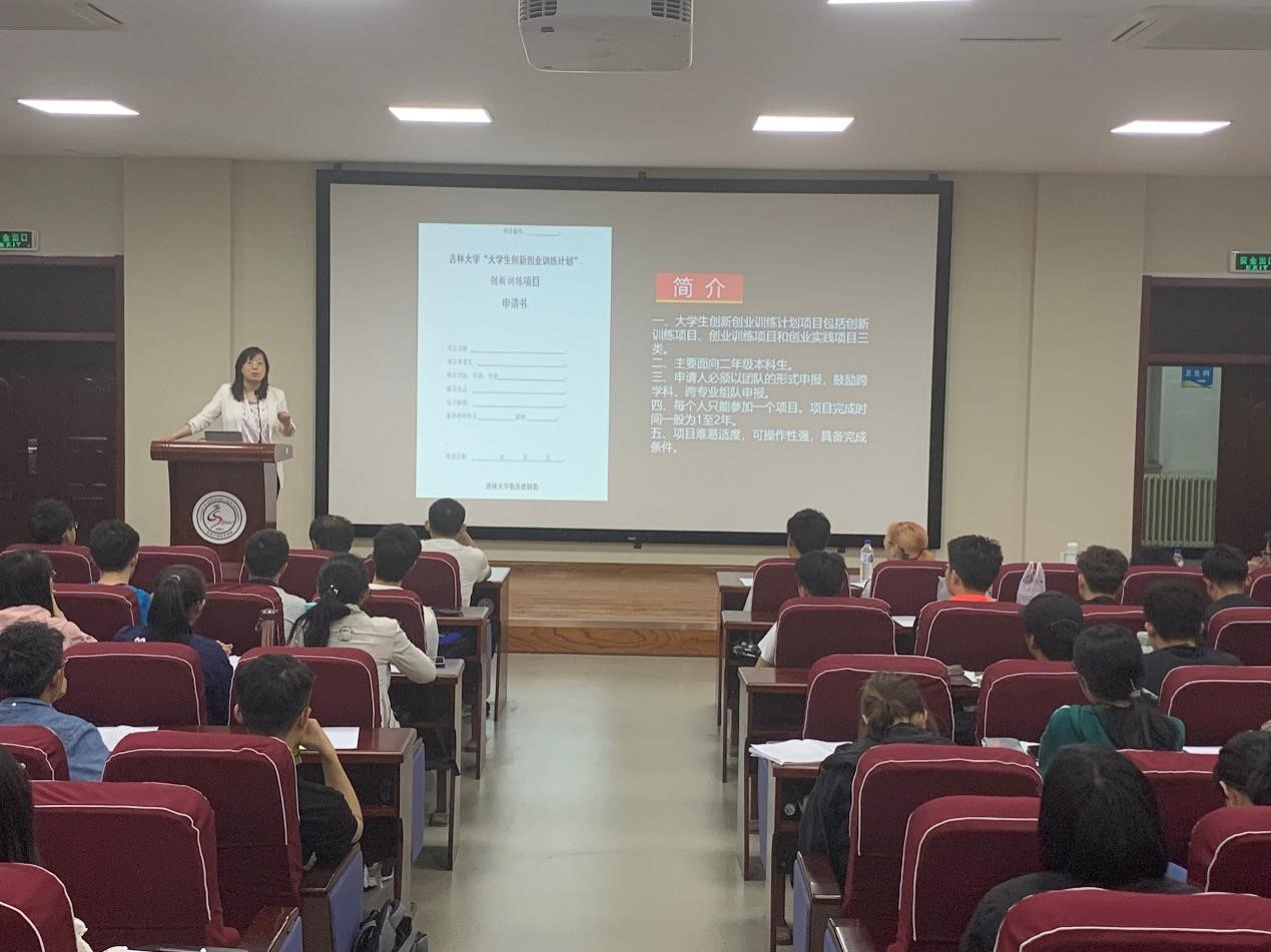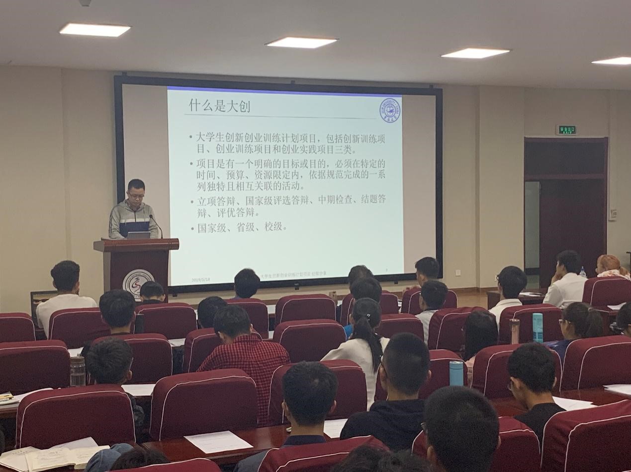 大创立项的规定和要求等,同时展示了以往大创项目的成果,拓宽了同学们的选题思路。最后,同学们就项目选题、政策疑问等问题与王老师进行了交流。接下来,窦星磊学长作为国家级优秀项目的结题者,从学生的角度又详细的讲述了大创过程中的一些注意事项,给同学们极大的启发。