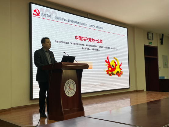 为了使同学们从党史中切身感受党的艰辛历程和辉煌成就,汲取前行的力量,坚定“听党话、感党恩、跟党走”的理想信念,宫书记首先带领同学们回望百年党史,感悟中国共产党“理想、奋斗、牺牲”的精神底色。他从党始终不断凝聚人民的意志、始终敢于牺牲自己、带领人民军队从胜利走向胜利三个方面,对“中国共产党为什么能”这一问题作出了深刻阐释。又以“站起来、富起来、强起来”三个关键词为脉络,系统回顾了共和国的奋斗历程与沧桑巨变:新中国的成立彻底改变了近代以后100多年中国积贫积弱、受人欺凌的悲惨命运,社会主义基本制度的建立为国民经济发展奠定了重要基础,改革开放极大解放和发展了社会生产力,新时代中国特色社会主义的伟大成就使中华民族踏上伟大复兴的新征程。宫皓宇勉励同学们要把爱国之情、强国之志化为报国之行,努力成为爱国奉献、勇担使命的时代新人。