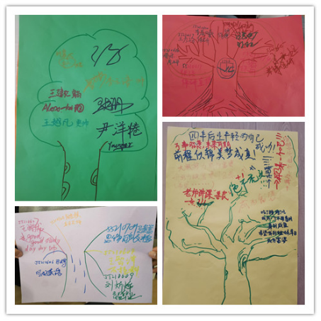热身游戏后,同学们随机分组,在依次进行简短的自我介绍后,开展“快乐传递”、“信心启迪”、“信任之旅”等小游戏。“快乐传递”活动让同学们将自己的想法和祝愿写在卡片上,鼓励同学们主动交际,不惧未来;“信心启迪”活动让同学们写下自己的三个小目标,为今后的大学生活明确前进方向;“信任之旅”活动,所有同学分批次体验“盲人”感觉,在没有语言沟通的情况下由“引路人”带领到达终点,增强同学间相互信任。以上活动使同学们收获了同学情谊,增强了集体意识,挖掘了自身潜能,调整了自己心态,明晰了努力方向,增进了彼此友谊。随着活动接近尾声,在《相亲相爱的一家人》的背景音乐声中,同学们拿起手中的画笔,共同绘制了一幅《团体树》,写下新学期的美好祝愿。至此,17吃瓜网