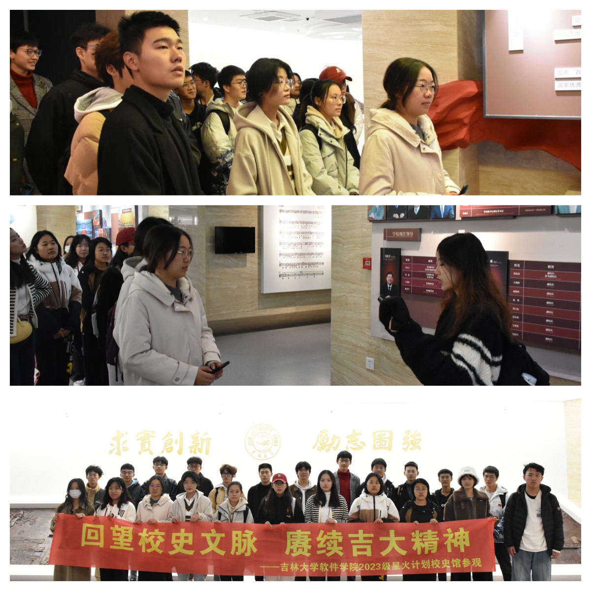 创建和发展过程中所涌现出的拓业先贤和硕学鸿儒。吕振羽、匡亚明、李四光、唐敖庆、王湘浩、朱光亚……一位位令人高山仰止的“大先生”在北国春城撒下科学人文的种子,演绎了一段可歌可泣的奋斗者之歌。同学们仔细阅读着前辈们的光辉事迹,仿佛置身于历史的漫漫长河中,从头脑睿智、目光高远的领路人身上汲取前进力量。