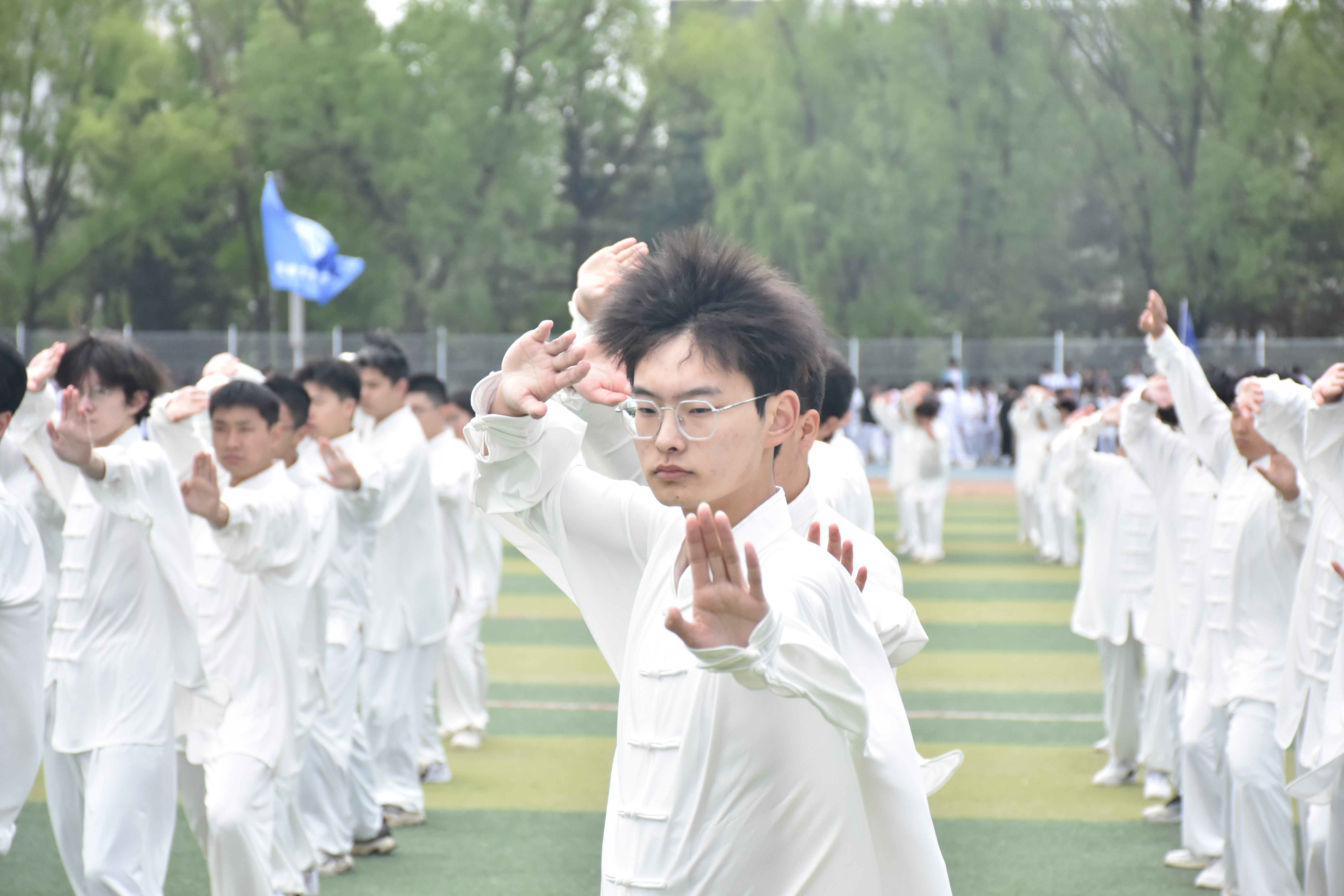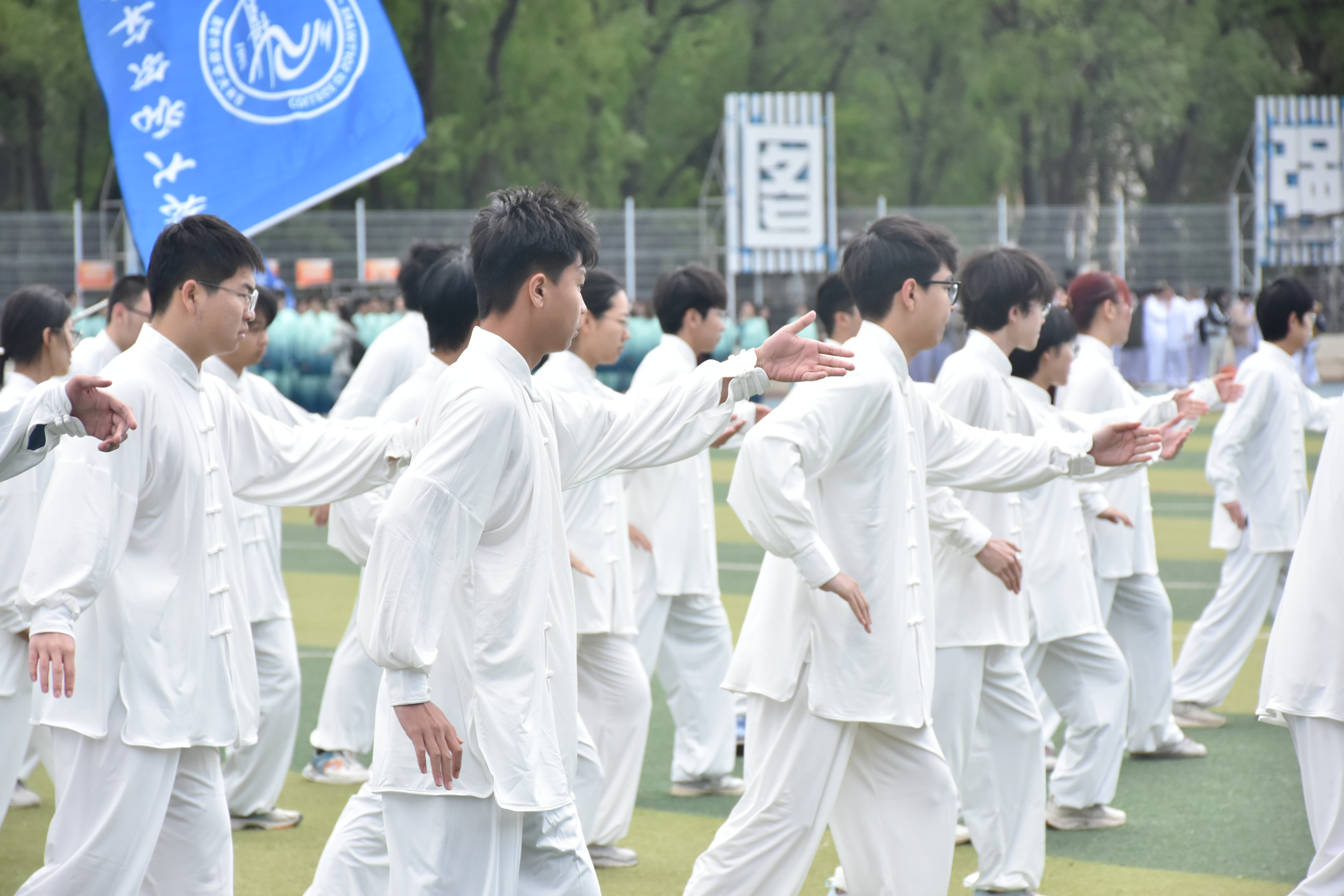 众多学生的积极参与,由学生会秘书部组织太极拳方阵,并负责日常训练的协调工作。自训练之初,同学们就表现出了极高的热情和决心。他们深知,太极拳作为中华武术的瑰宝,不仅要求技艺精湛,更需要内心的宁静和专注。因此,他们每天都在教练的指导下,认真练习每一个动作,不断揣摩太极拳的精髓。