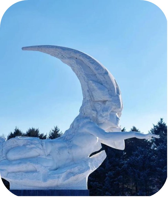薛晴伊带领的“佳城雪韵队”惊叹于佳木斯市冰雪大世界中形态各异的雪雕与冰雕作品,这里有气势恢宏的龙形雪雕,也有富有童趣的小火车雪雕;李亚婷带领的“冰雪文化队”前往长春市净月潭,这里的雾凇长廊与冰封湖面宛如琉璃,更有创新的冰雕艺术与AR技术结合,带来新奇体验。团队成员在文化体验外,还通过微博、抖音等社交平台进行推广宣传,将传统参观地转型为“网红经济”现场,通过分享冰雪艺术背后的故事、制作文化推广报告等方式,吸引更多游客走近东北,领略冰雪文化的独特魅力。