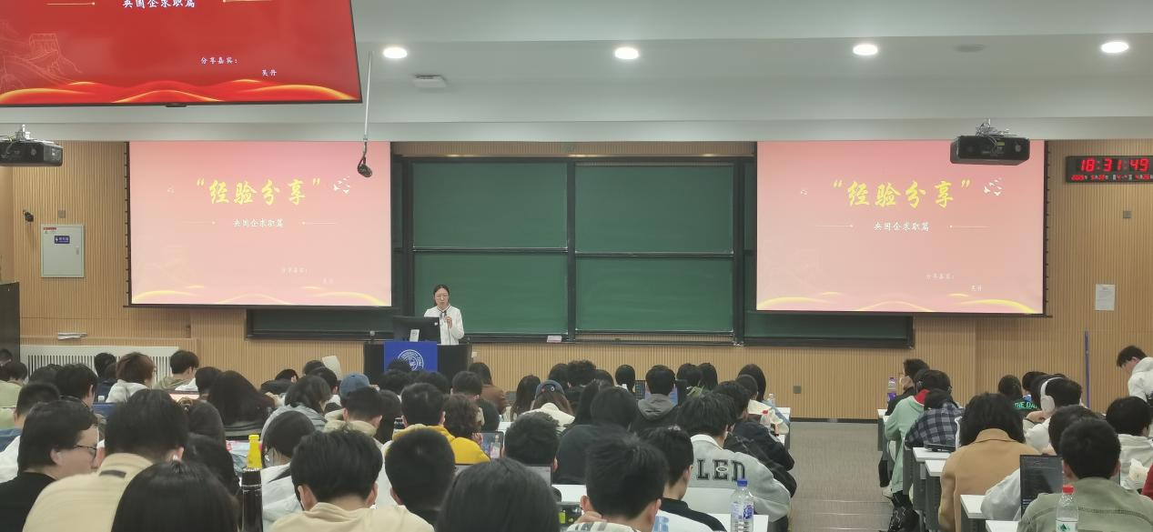 2022级本科生开展“朋辈同行筑路 榜样领航求职”国企及公考求职经验分享会。活动邀请两名优秀应届毕业生围绕银行、“一汽”等大型国企求职策略以及国考、选调等公考前期准备工作开展详细讲解。