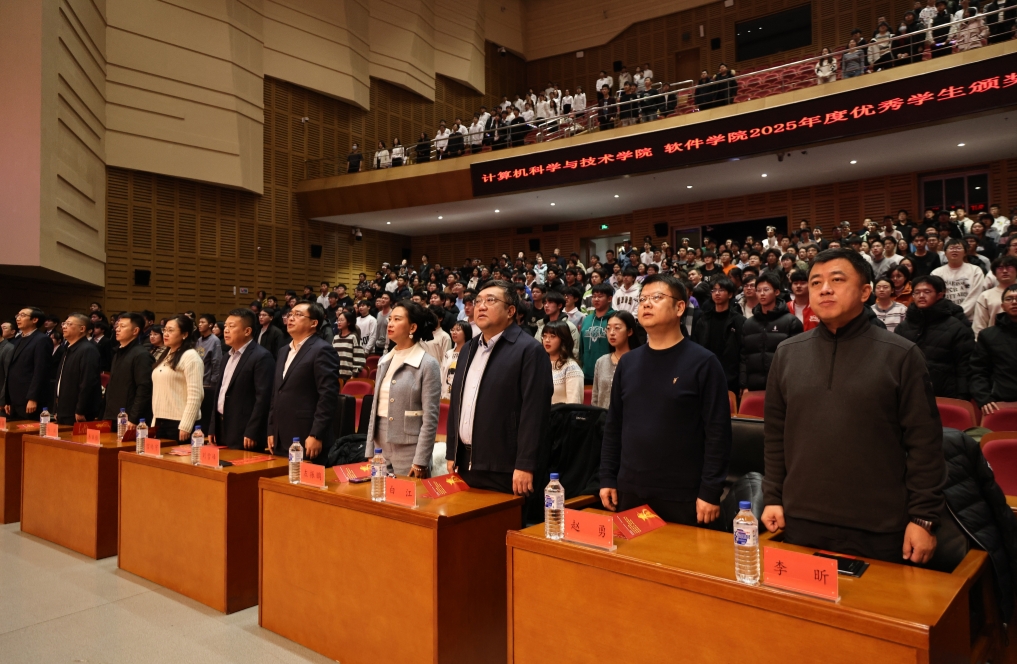 颁奖典礼在庄严的国歌声中拉开帷幕。首先由宫皓宇老师宣读2025-2026学年本科生班主任聘任名单及“2025年度优秀学生”获奖名单,并为班主任代表颁发聘书。
