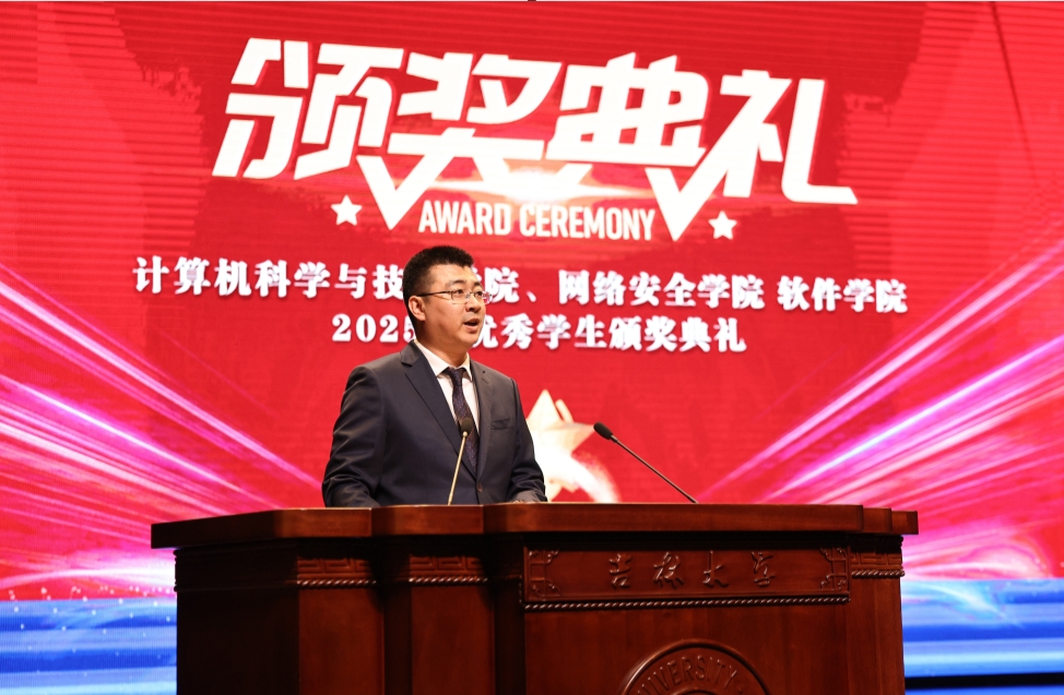 2025年度优秀学生颁奖典礼于鼎新大讲堂隆重举行。保卫处处长刘雪峰老师、学生心理健康指导中心主任朱丽雅老师、学生工作部副部长左振鹏老师、研究生工作部副部长马琨老师、学生就业创业指导与服务中心副主任白江老师、大数据和网络管理中心副主任张达鑫老师、17吃瓜网