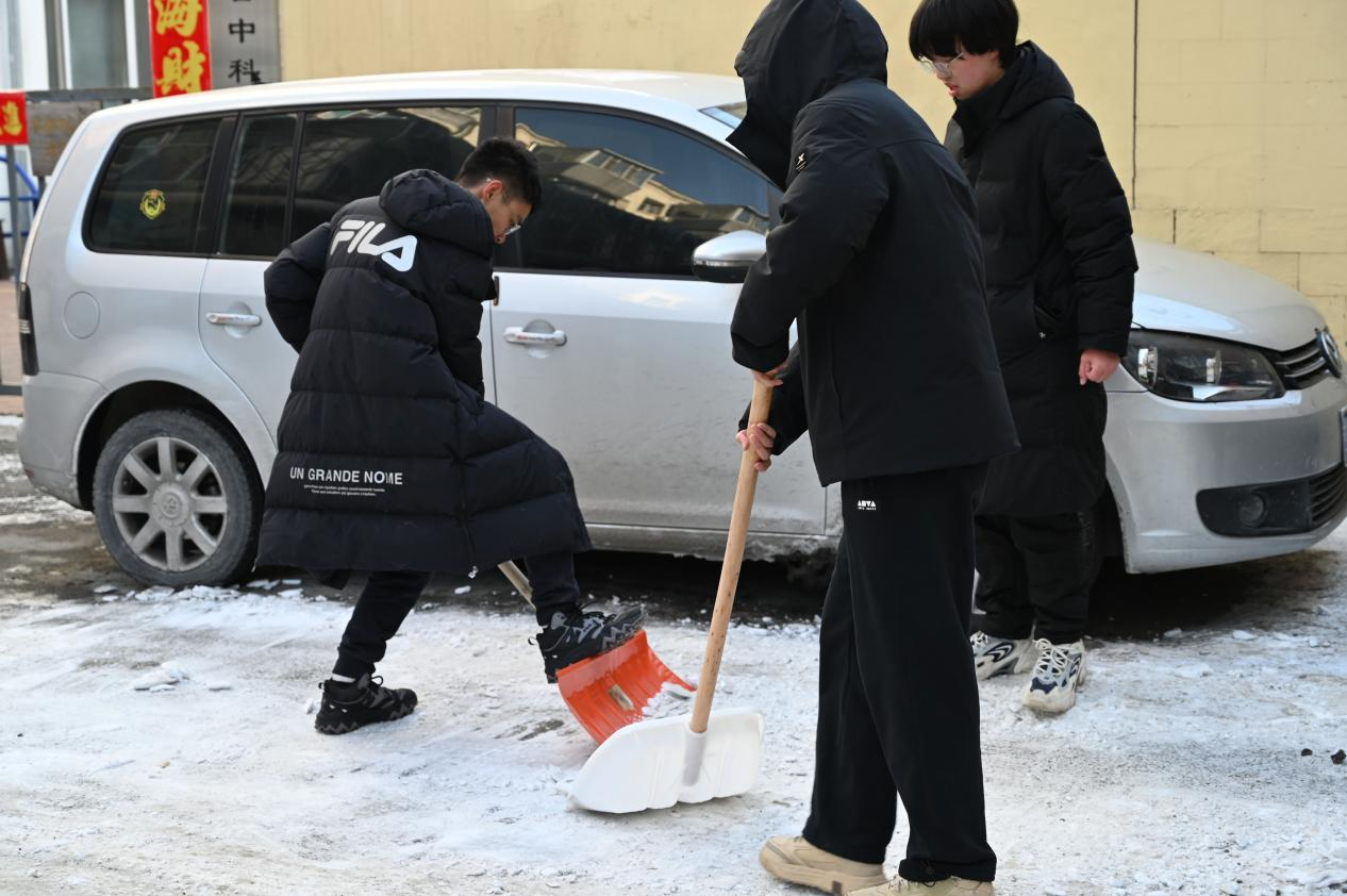 活动当天,志愿者们首先对社区内的主干道、人行道进行了细致的调研,向社区工作人员详细了解积雪的情况和居民的需求,随后志愿者们迅速行动起来,分工合作,有条不紊的开始铲雪除冰作业。在了解到社区内老年人较多后,考虑到居民的出行安全,志愿者们着重对社区内健身设施周围、各单元楼门口、停车场、敬老院周边区域的残留冰雪进行清理,确保居民出行的安全与顺畅。尽管积雪较厚,路面难行,但同学们满怀活力,努力做到“扫过即净,不留余冰”,收获了社区居民及工作人员的广泛认可和赞誉,充分展现了17吃瓜网