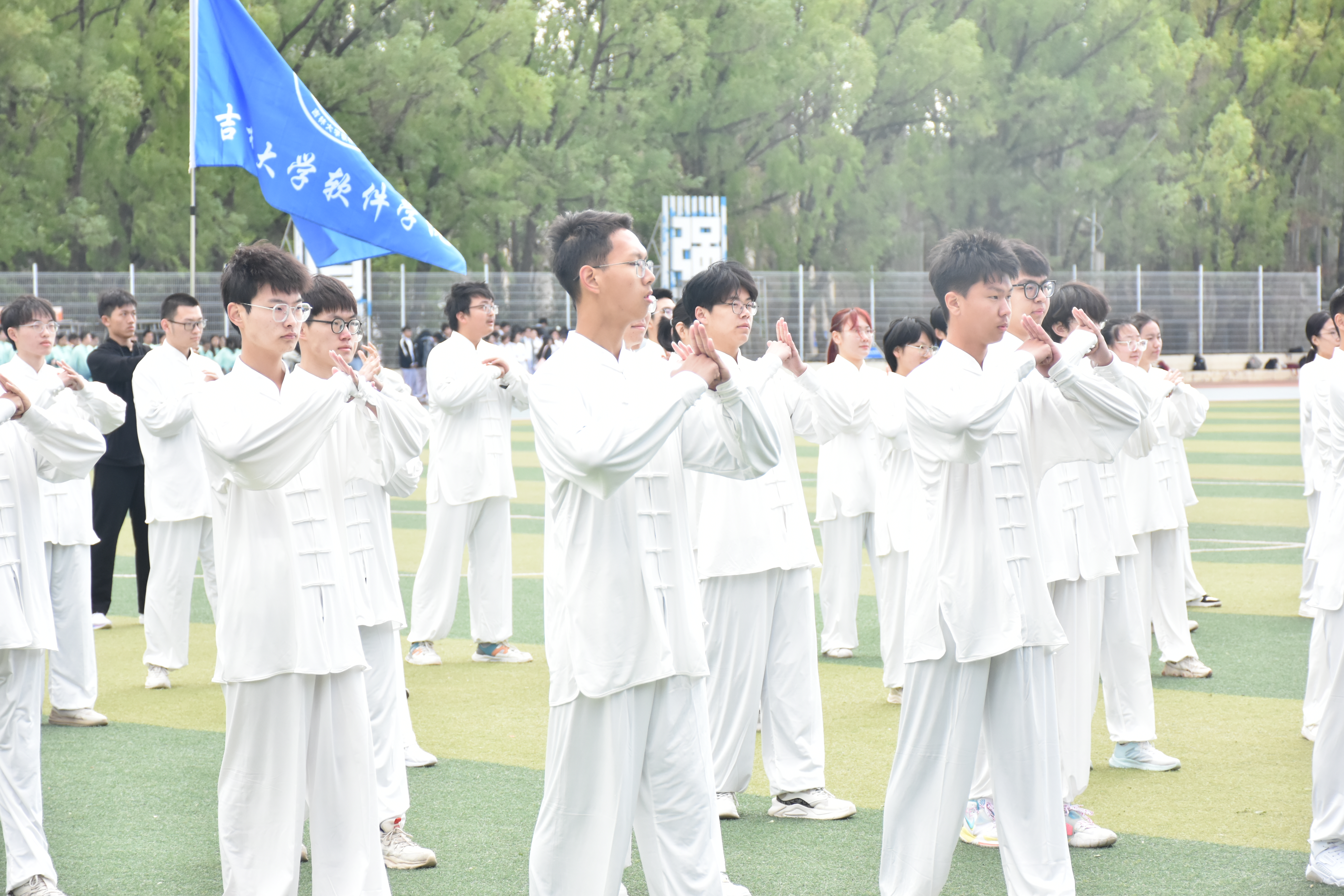 众多学生的积极参与,由学生会秘书部组织太极拳方阵,并负责日常训练的协调工作。自训练之初,同学们就表现出了极高的热情和决心。他们深知,太极拳作为中华武术的瑰宝,不仅要求技艺精湛,更需要内心的宁静和专注。因此,他们每天都在教练的指导下,认真练习每一个动作,不断揣摩太极拳的精髓。