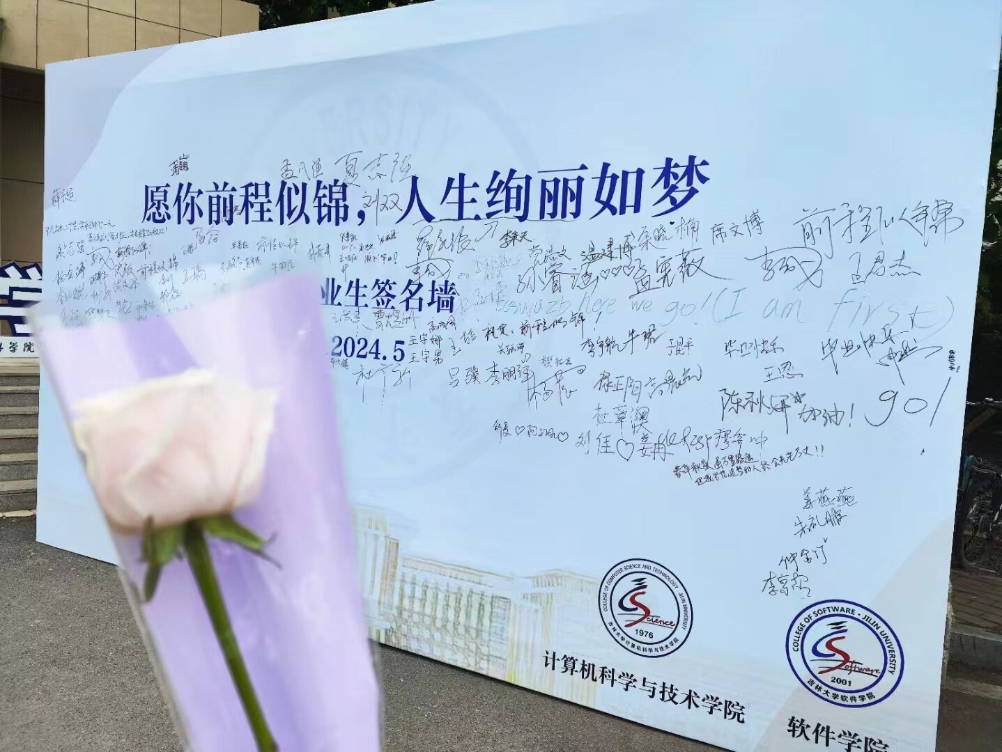 老师导师表达对毕业生的谆谆教诲和亲切关心。随后,毕业生也纷纷来到签名墙前,或签下姓名表达对母校的不舍与感恩,或留下美好祝福祝愿母校蒸蒸日上,并在签名墙前合影留念,记录下灿烂的毕业时光。