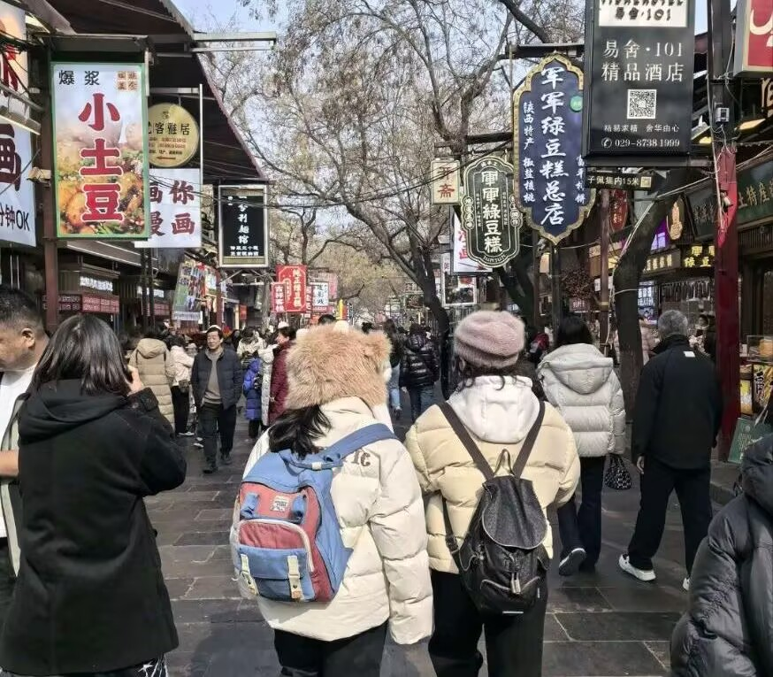 “四海同勤”实践团走进西安市回民街,通过实地走访与数字资料查阅结合的方式开展调研。队员们记录下老槐树地标、老字号商铺等特色标志,关注茯苓茶专卖、汉服妆造旅拍等新兴业态,发现此类业态已与老城区深度融合,成为传统文化商业化创新表达的重要载体。队员们还通过新媒体平台梳理回民街数字化转型成果,为传统文化现代传承探索可行路径。