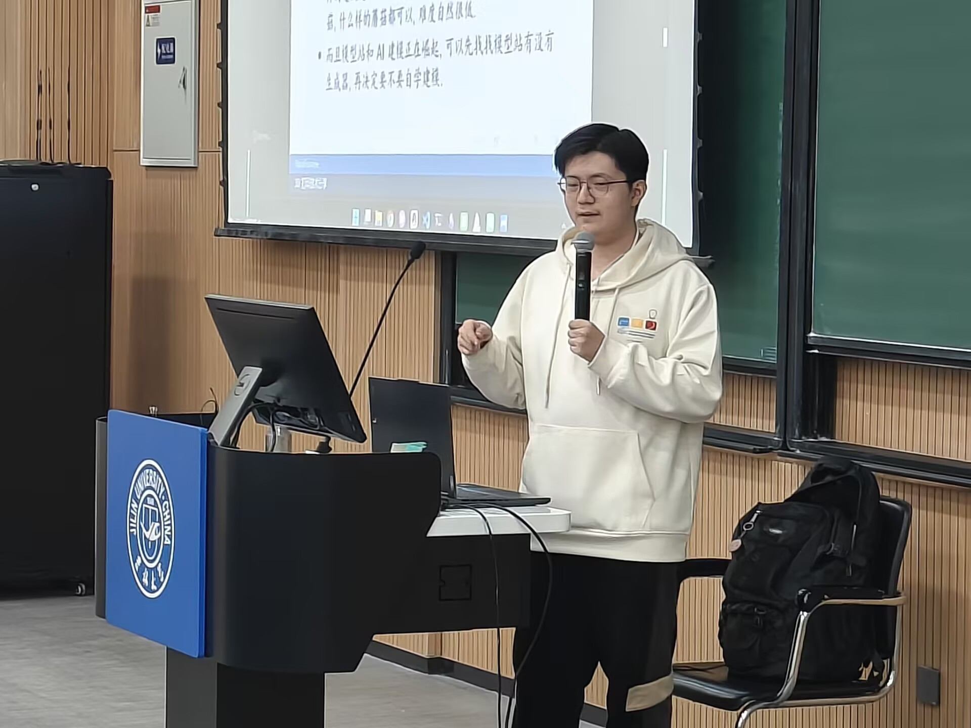 本次分享会紧扣实操应用,兼顾理论知识与实践展示,内容贴合同学们的学习需求与科创入门实际。王福峥结合自身技术积累,围绕3D打印的主流技术类型、热熔3D打印机核心构造、标准操作流程、实际应用场景、常见问题排查及新手入门指南等核心内容,展开条理清晰、深入浅出的讲解。活动现场同步开展实时打印演示,让在场同学直观见证3D打印的完整运转流程,将抽象技术原理转化为具象实践展示,帮助同学们快速搭建起对3D打印技术的系统认知,夯实科创知识根基。